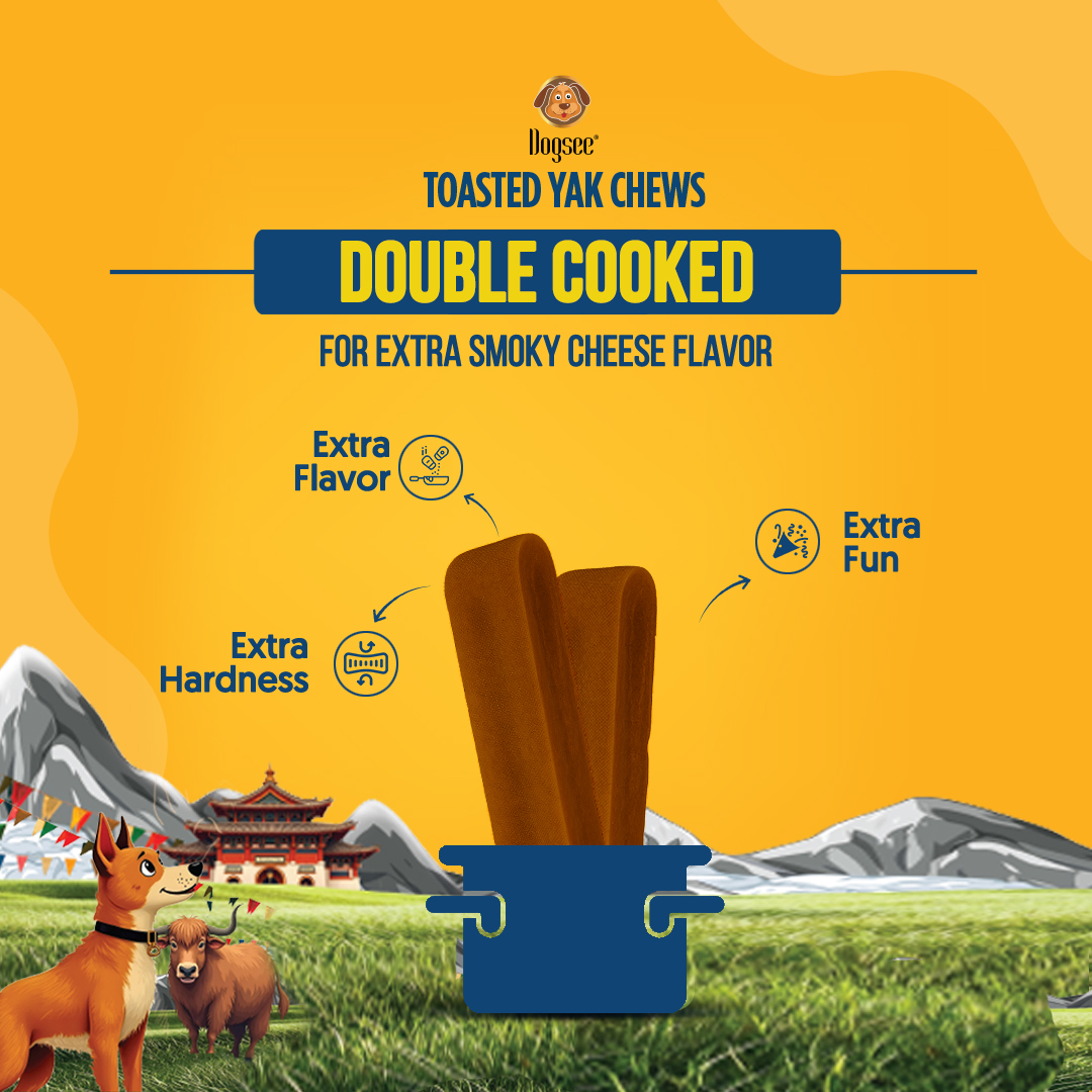 Double Cooked for Extra Hardness - Dogsee Toasted Himalayan Yak Cheese Dental Chews are double cooked for an extra smoky cheese flavor and hardness that dogs will absolutely love.